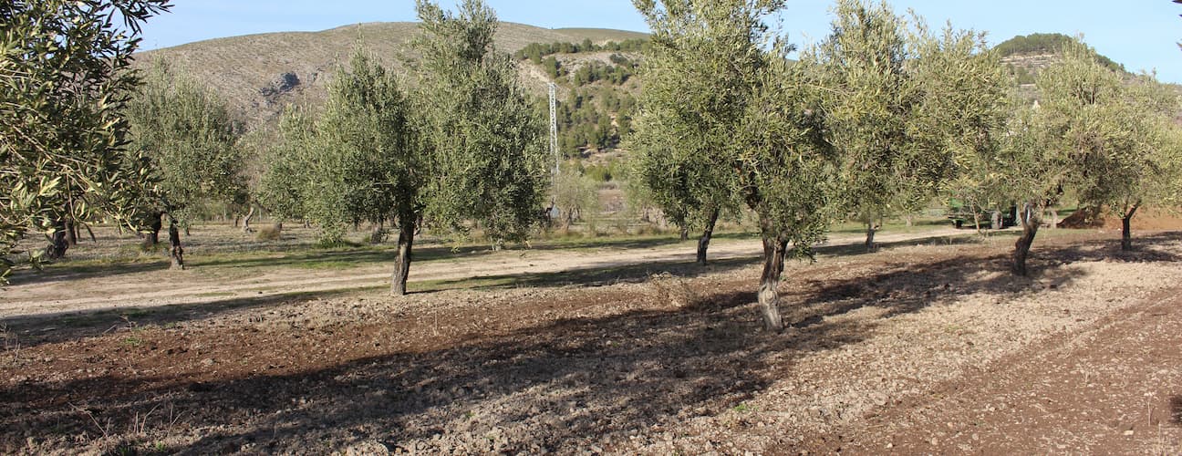 El nuestro es un olivar de montaña, un terreno abancalado y con pendientes, con unas pocas líneas de árboles (incluso solo una) en cada terraza. Muchos de estos bancales tienen márgenes de piedra, verdadero patrimonio del paisaje de muchas comarcas del interior de la Montaña de Alicante.
